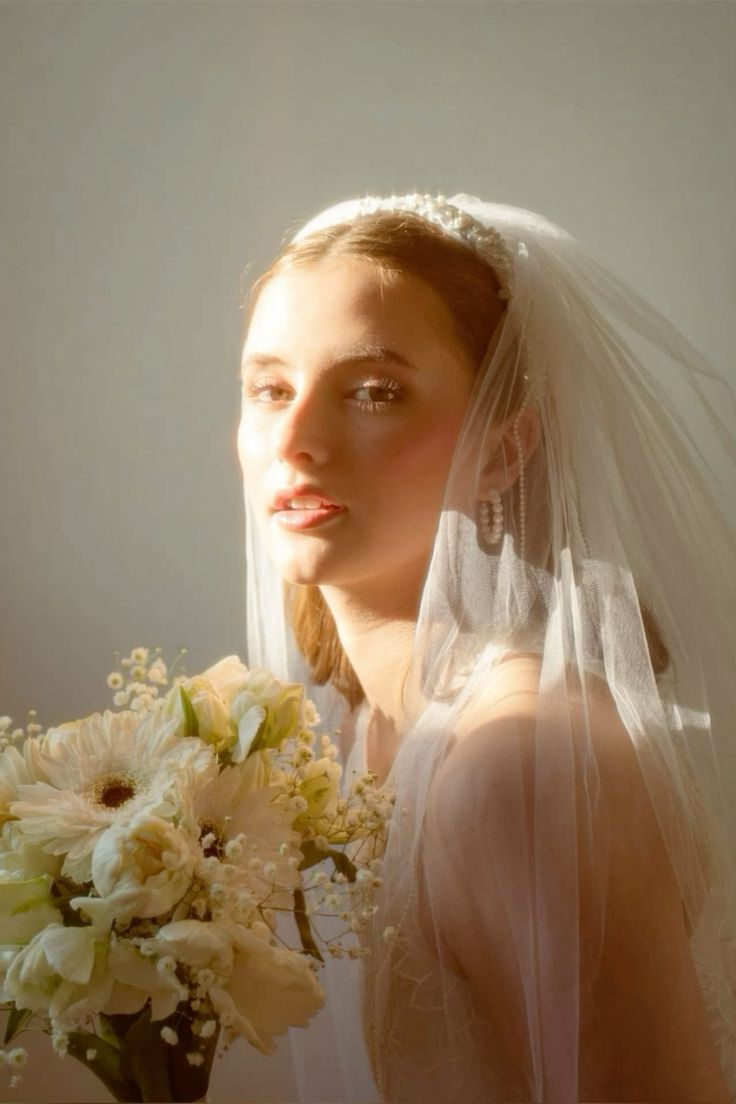 These veils are shorter veils that partially cover the bride’s face. Birdcage veils bring back a vintage feel to a wedding and allow for a classy, timeless look. These veils can be paired well with any type of jewelry and wedding dress.